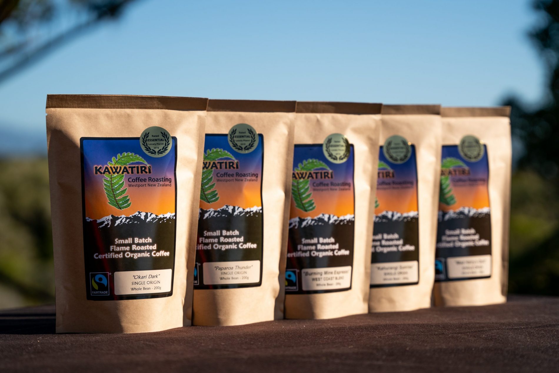Starter Pack – Paparoa Thunder, Kahurangi Sunrise, Okari Dark, Mad Harry’s Gold, and Burning Mine Espresso, all in one tasty package (5x200g).